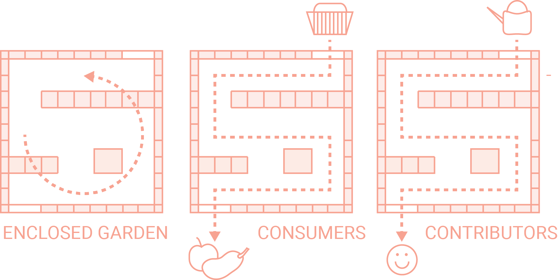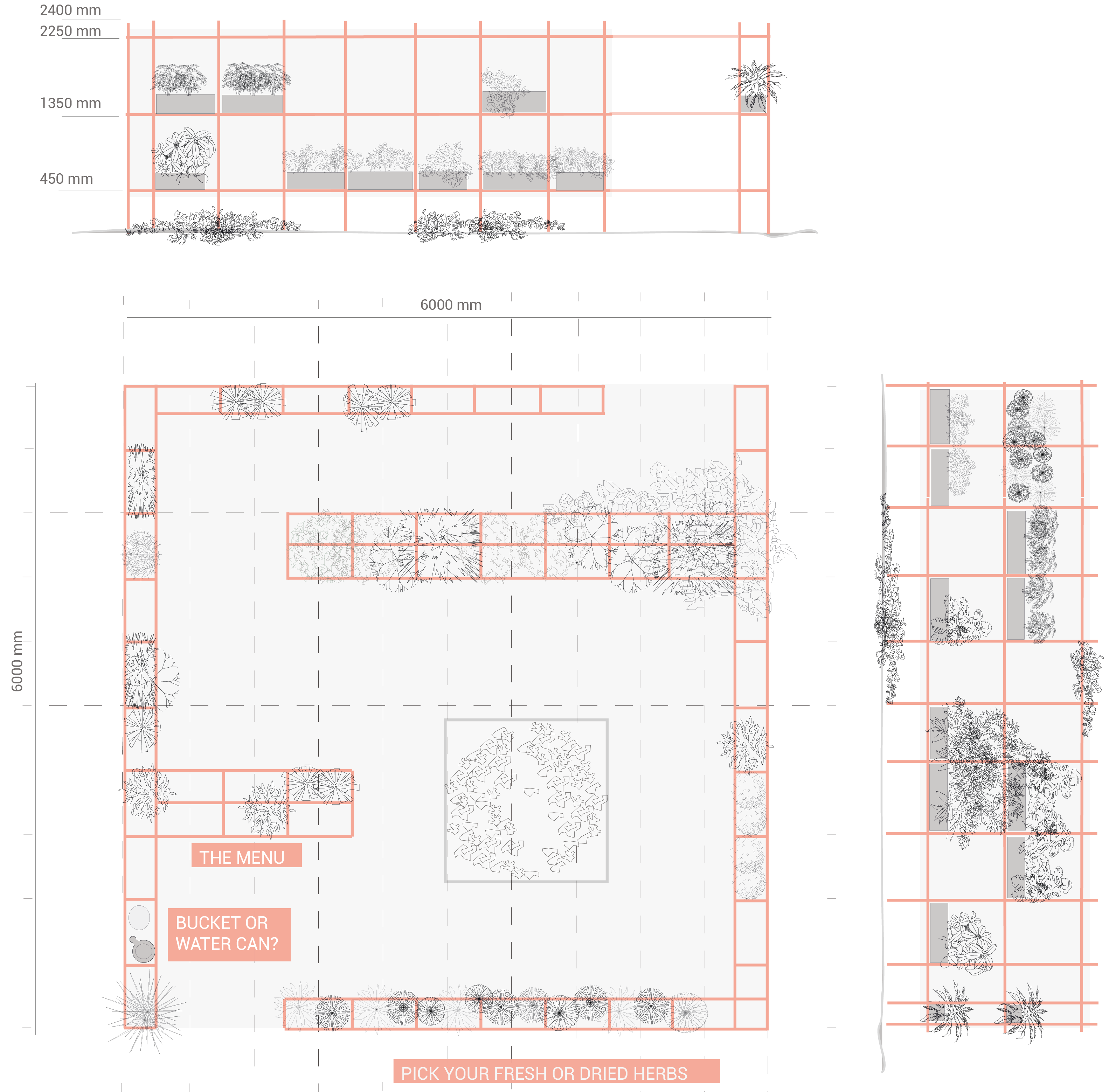 Through a spiraling S people are led through an oases of plants, vegetables and fruits. Slowly consumers can choose and decide whichever plant they need. This is of course based on the season and ripeness of fruits or vegetables. At the end a small check-out will price the products and the customer can enjoy a piece of fresh and organic food. The contributor can choose to care for plants using the small watering can. In this way the SUPERmarket will be sure of a continuously growing stock.